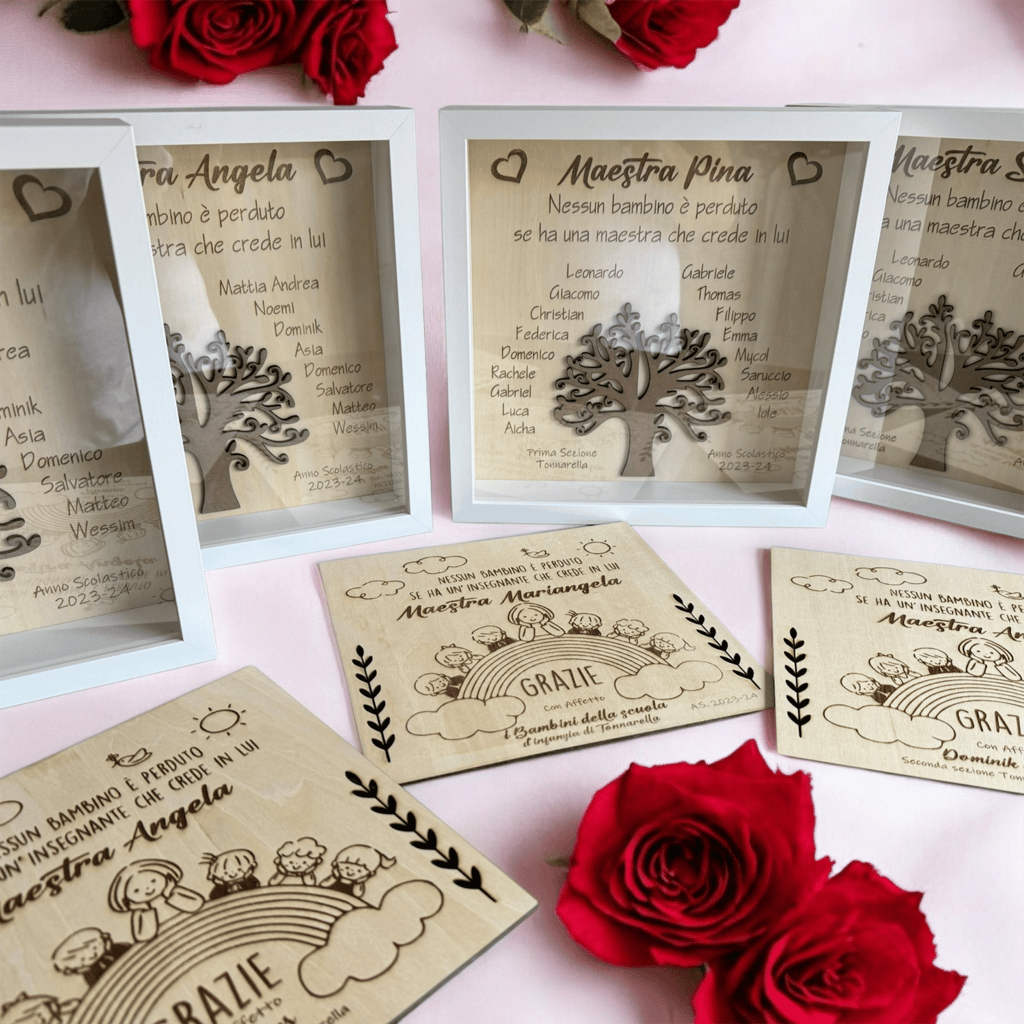 Scopri alcune delle incisioni su legno, plexiglass, cuoio e metallo.